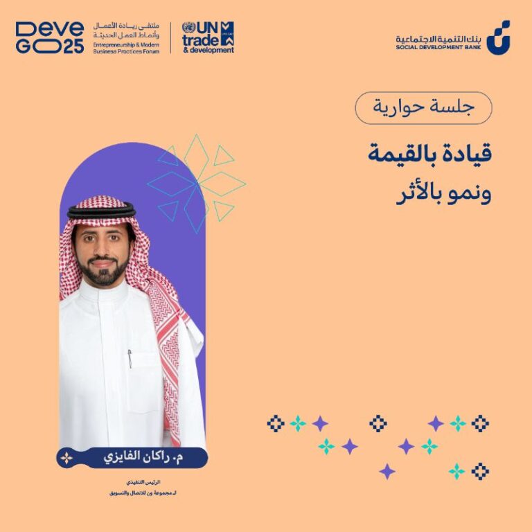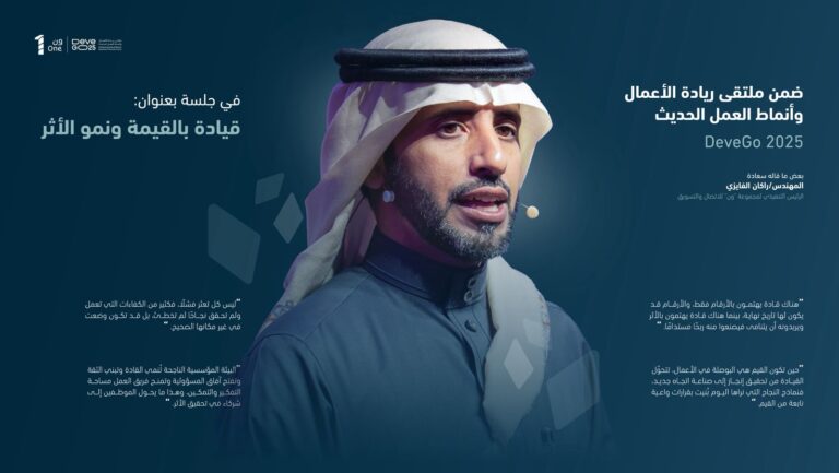 أبرز ما قاله سعادة الرئيس التنفيذي م. راكان الفايزي، ضمن اليوم الثاني من ملتقى DeveGO في جلسة بعنوان: “حيث تقود القيم… ينمو الأثر”.